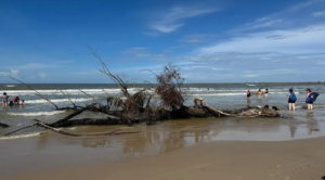 La palizada arrastrada por el Río Pánuco continuó este sábado con su arribo a Playa Miramar en Ciudad Madero luego...
