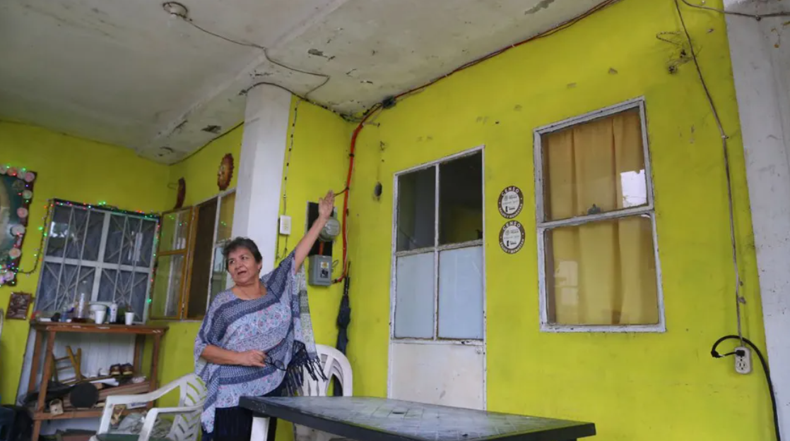 Su mamá fue afortunada, rifaron 150 viviendas prefabricadas, se las armaron asegura que fue una empresa de Monterrey y la casa amarilla que habita aún mantiene los ganchos donde se sujeta las placas de cemento con varilla.