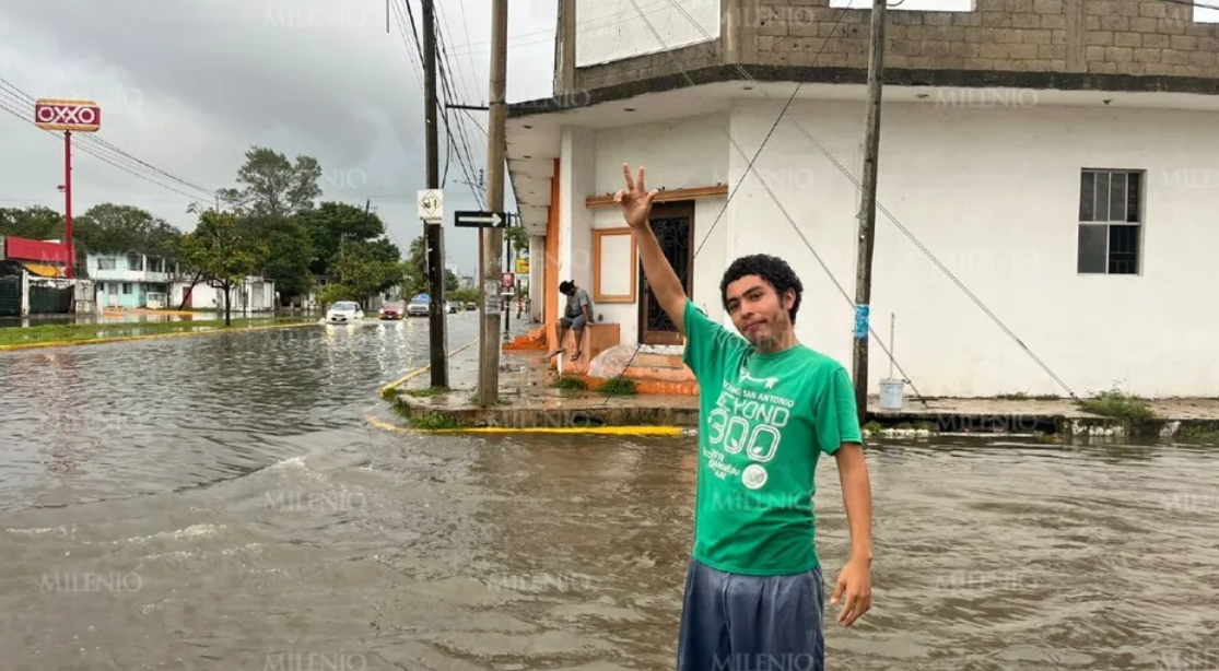 Justo frente a la secundaria Melchor Ocampo en Ciudad Madero, dos hermanos han hecho de esta situación su trinchera en temporada de lluvias. José y Fernando Jiménez, con la ropa mojada, se mantienen atentos a los automóviles que se detienen, dudan o, de plano, quedan atrapados en el agua.