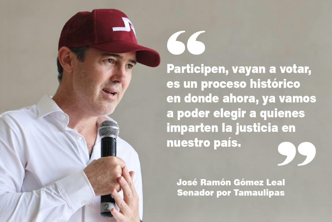 El senador tamaulipeco por MORENA, José Ramón Gómez Leal, JR llamó a la ciudadanía a votar en la elección al Poder Judicial de este primero de junio, y señaló que hay que apostar por la democracia y porque el pueblo decida.